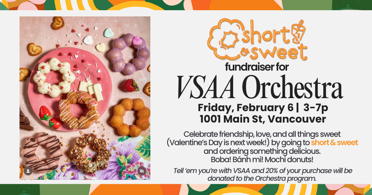 Tell ‘em you’re with VSAA and 20% of your purchase will be donated to the Orchestra program.